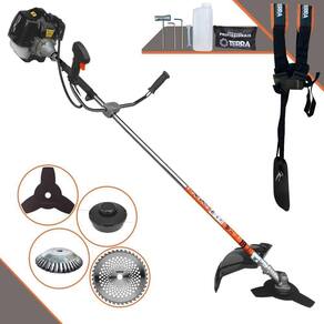 Roçadeira Profissional Lateral Terra GRH-430 Black À Gasolina 2 Tempos 43cc 1,7HP + Faca 40 Dentes 255mm 2mm + Escova Rotativa 200mm 38 Cerdas