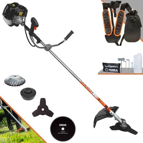 Roçadeira Profissional Lateral Terra GRH-430 Black À Gasolina 2 Tempos 43cc 1,7HP + Faca 80 Dentes 255mm 1,5mm + Escova Rotativa 200mm 38 Cerdas
