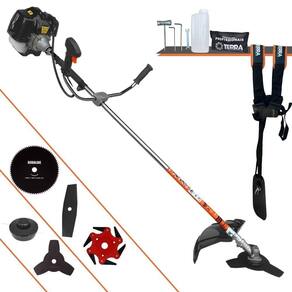 Roçadeira Profissional Lateral Terra GRH-430 Black À Gasolina 2 Tempos 43cc 1,7HP + Faca 2 Pontas 330mm 2,7mm + Faca 80 Dentes 255mm 1,5mm + Faca 6 Pontas 250mm