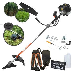 Roçadeira Profissional Lateral Terra GRH-430 Black À Gasolina 2 Tempos 43cc 1,7HP + Faca 2 Pontas 330mm 2,7mm