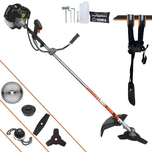 Roçadeira Profissional Lateral Terra GRH-430 Black À Gasolina 2 Tempos 43cc 1,7HP + Faca 2 Pontas 330mm 2,7mm + Faca 40 Dentes 255mm 2mm + Trimmer