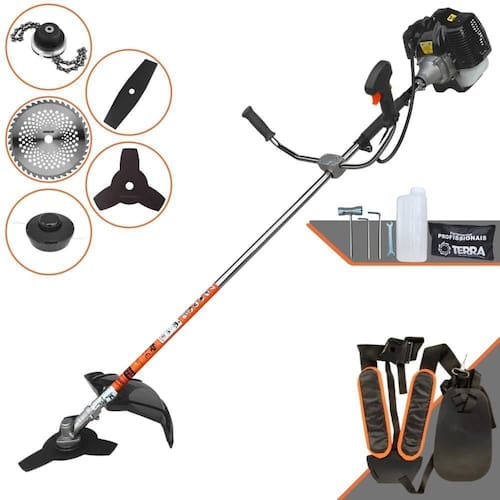 Marca: Terra | Com sistema antivibração: Não | Selo SEC: N/A | Modelo: VAR04GRH4302P40DTM | Motivo de GTIN vazio: O produto é um kit ou pack | Capacidade do tanque de Óleo: N/A | Fonte do produto: N/A | Tipo de guiador: Aberto | Com regulação de guiador: Sim | Sistema de partida: Manual | Comprimento total: 188cm | Com guarda de segurança: Sim | Capacidade do tanque de combustível: 1,0L | MPN: 84678900 | Diâmetro de corte do disco de corte: 255mm | Largura total: 40cm | Tempos do motor: 2 | Eixo de transmissão: Rígido | Peso: 12kg | Tipos de máquinas: Roçadeira | Potência do motor: 1,7HP | Cilindrada: 43cc | Tipo de eixo da máquina: Reto | Diâmetro de corte da tanza: 255mm | Sistemas de corte: Faca e Carretel de Nylon | SKU: VAR04GRH4302P40DTM | Acessórios incluídos: Kit ferramentas, cinto de sustentação, misturador de combustível | Condição do item: Novo | Código universal de produto: 0703363312161 | É kit: Sim