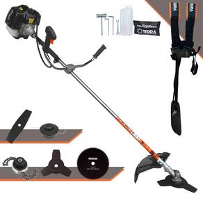 Roçadeira Profissional Lateral Terra GRH-430 Black À Gasolina 2 Tempos 43cc 1,7HP + Faca 2 Pontas 330mm 2,7mm + Faca 80 Dentes 255mm 1,5mm + Trimmer