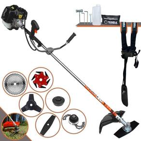 Roçadeira Profissional Lateral Terra GRH-520 Black À Gasolina 2 Tempos 52cc 2,5HP + Faca 3 Pontas 255mm 2,9mm + Faca 40 Dentes 255mm 2mm + Trimmer + Faca 6 Pontas 250mm