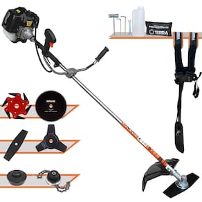 Roçadeira Profissional Lateral Terra GRH-520 Black À Gasolina 2 Tempos 52cc 2,5HP + Faca 3 Pontas 255mm 2,9mm + Faca 80 Dentes 255mm 1,5mm + Trimmer + Faca 6 Pontas 250mm