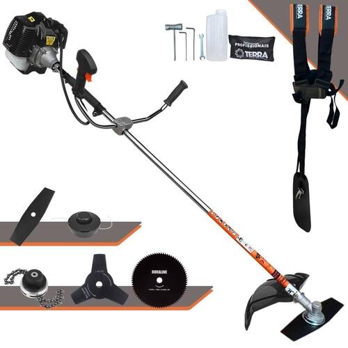 Roçadeira Profissional Lateral Terra GRH-520 Black À Gasolina 2 Tempos 52cc 2,5HP + Faca 3 Pontas 255mm 2,9mm + Faca 80 Dentes 255mm 1,5mm + Trimmer