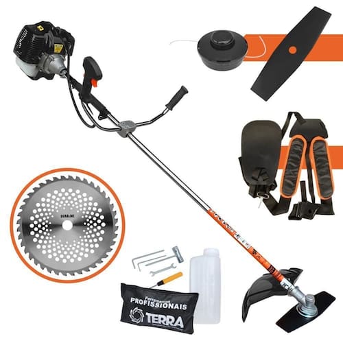 Roçadeira Profissional Lateral Terra GRH520 Á Gasolina 52cc 2T 2,5HP + Faca 40 Dentes Duraline 255mm 2mm