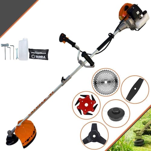 Roçadeira Profissional Lateral Terra GRHB-430 Bipartida À Gasolina 2 Tempos 43cc 1,7HP + Faca 3 Pontas + Faca 40 Pontas + Faca 6 Pontas 250mm