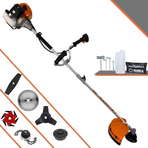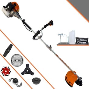 Roçadeira Profissional Lateral Terra GRHB-430 Bipartida À Gasolina 2 Tempos 43cc 1,7HP + Faca 3 Pontas + Faca 40 Pontas + Trimmer + Faca 6 Pontas 250mm