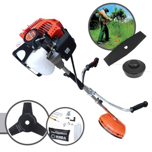 Roçadeira Profissional Lateral Terra GRHB-430 Bipartida À Gasolina 2 Tempos 43cc 1,7HP + Faca 3 Pontas