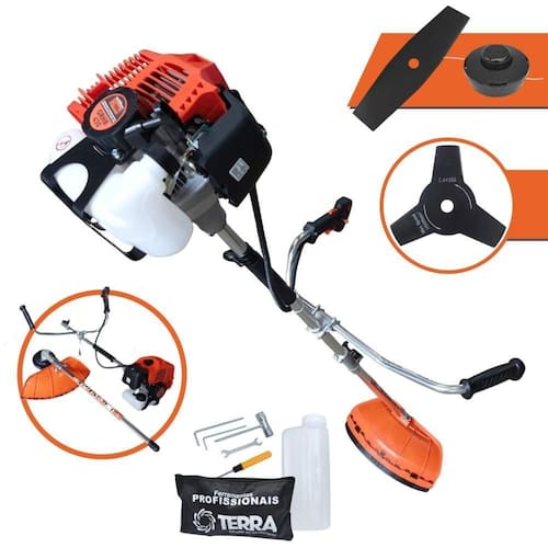 Roçadeira Profissional Lateral Terra GRHB-430 Bipartida À Gasolina 2 Tempos 43cc 1,7HP + Faca 3 Pontas