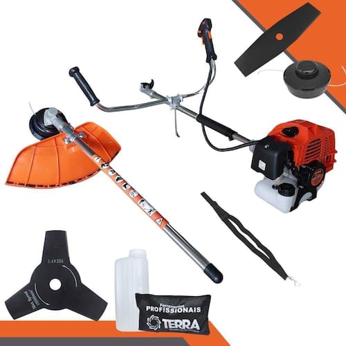 Roçadeira Profissional Lateral Terra GRHB-430 Bipartida À Gasolina 2 Tempos 43cc 1,7HP + Faca 3 Pontas