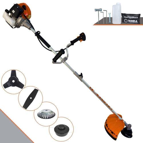 Roçadeira Profissional Lateral Terra GRHB-430 Bipartida À Gasolina 2 Tempos 43cc 1,7HP + Faca 3 Pontas + Escova Rotativa 38 Cerdas