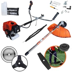 Roçadeira Profissional Lateral Terra GRHB-430 Bipartida À Gasolina 2 Tempos 43cc 1,7HP + Faca 3 Pontas + Faca 40 Pontas