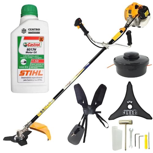 A ROÇADEIRA É DA MARCA VULCAN, E ACOMPANHA UM ÓLEO 2T DA MARCACASTROL STIHL.