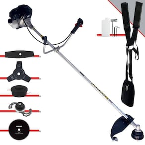 Roçadeira Profissional À Gasolina Toyama RT43L-B-25A 43cc 1,7HP 2T Com Lâmina 3 Pontas + Faca 2 Pontas 330mm + Faca 80 Dentes 255mm + Trimmer