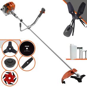 Com guidão ergonômico lateral, permite um alcance amplo e maior mobilidade, capaz de aumentar a produtividade diária. Possui motor 2 tempos á gasolina, de 42,7 Cilindradas (43cc) 9.000 de rotação 1,7HP de potência que proporcionam maior performance e economia na operação.Seu conjunto de acessórios inclui kit de ferramentas, cinto de suporte duplo almofadado, carretel de nylon e lâmina de corte 3 pontas.