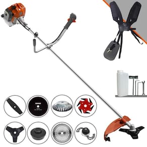 Com guidão ergonômico lateral, permite um alcance amplo e maior mobilidade, capaz de aumentar a produtividade diária. Possui motor 2 tempos á gasolina, de 42,7 Cilindradas (43cc) 9.000 de rotação 1,7HP de potência que proporcionam maior performance e economia na operação.Seu conjunto de acessórios inclui kit de ferramentas, cinto de suporte duplo almofadado, carretel de nylon e lâmina de corte 3 pontas.