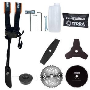 Roçadeira Profissional Lateral Terra GRH-430 Black À Gasolina 2 Tempos 43cc 1,7HP + Faca 2 Pontas 330mm 2,7mm + Faca 40 Dentes 255mm 2mm + Faca 80 Dentes 255mm 1,5mm + Óleo Castrol Stihl 2T 500ml
