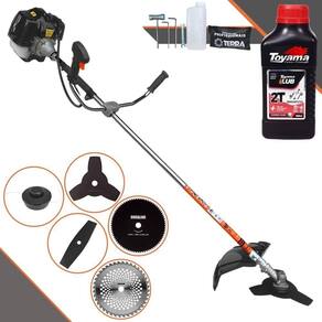 Roçadeira Profissional Lateral Terra GRH-430 Black À Gasolina 2 Tempos 43cc 1,7HP + Faca 2 Pontas 330mm 2,7mm + Faca 40 Dentes 255mm 2mm + Faca 80 Dentes 255mm 1,5mm + Óleo TOYAMA LUB FG50 500ml 2T
