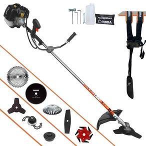 Marca: Terra | Com sistema antivibração: Não | Selo SEC: N/A | Modelo: VAR05GRH43024080638T | Motivo de GTIN vazio: O produto é um kit ou pack | Capacidade do tanque de Óleo: N/A | Fonte do produto: N/A | Tipo de guiador: Aberto | Com regulação de guiador: Sim | Sistema de partida: Manual | Comprimento total: 188cm | Com guarda de segurança: Sim | Capacidade do tanque de combustível: 1,0L | MPN: 84678900 | Diâmetro de corte do disco de corte: 255mm | Largura total: 40cm | Tempos do motor: 2 | Eixo de transmissão: Rígido | Peso: 12kg | Tipos de máquinas: Roçadeira | Potência do motor: 1,7HP | Cilindrada: 43cc | Tipo de eixo da máquina: Reto | Diâmetro de corte da tanza: 255mm | Sistemas de corte: Faca e Carretel de Nylon | SKU: VAR05GRH43024080638T | Acessórios incluídos: Kit ferramentas, cinto de sustentação, misturador de combustível | Condição do item: Novo | Código universal de produto: 0703363312642 | É kit: Sim