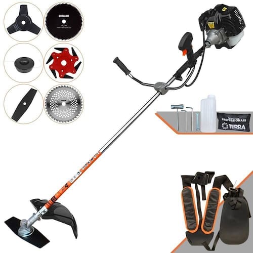 Roçadeira Profissional Lateral Terra GRH-520 Black À Gasolina 2 Tempos 52cc 2,5HP + Faca 3 Pontas 255mm 2,9mm + Faca 40 Pontas 255mm 2mm + Faca 80 Pontas 255mm 1,5mm + Faca 6 Pontas 250mm