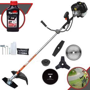 Roçadeira Profissional Lateral Terra GRH-520 Black À Gasolina 2 Tempos 52cc 2,5HP + Faca 3 Pontas 255mm 2,9mm + Faca 40 Pontas 255mm 2mm + Faca 80 Pontas 255mm 1,5mm + Óleo TOYAMA LUB FG50 500ml 2T