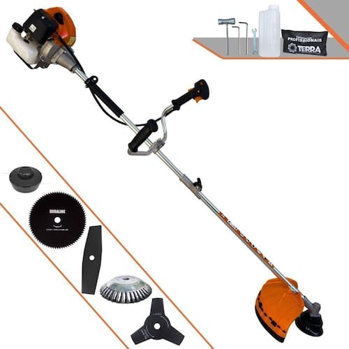 Roçadeira Profissional Lateral Terra GRHB-430 Bipartida À Gasolina 2 Tempos 43cc 1,7HP + Faca 3 Pontas + Faca 80 Pontas + Escova Rotativa 38 Cerdas