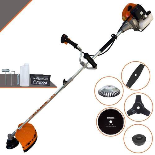Roçadeira Profissional Lateral Terra GRHB-430 Bipartida À Gasolina 2 Tempos 43cc 1,7HP + Faca 3 Pontas + Faca 80 Pontas + Escova Rotativa 38 Cerdas