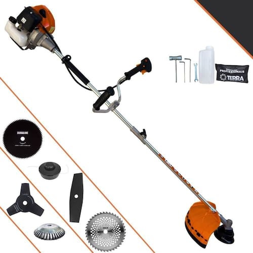 Roçadeira Profissional Lateral Terra GRHB-430 Bipartida À Gasolina 2 Tempos 43cc 1,7HP + Faca 3 Pontas + Faca 40 Pontas + Faca 80 Pontas + Escova Rotativa 38 Cerdas