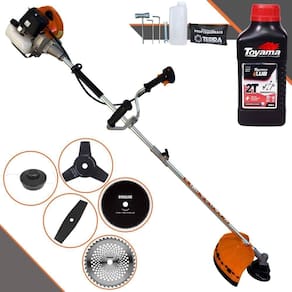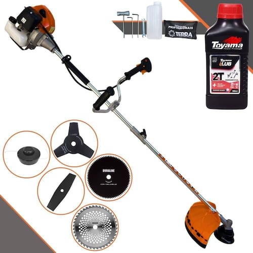 Roçadeira Profissional Lateral Terra GRHB-430 Bipartida À Gasolina 2 Tempos 43cc 1,7HP + Faca 3 Pontas + Faca 40 Pontas + Faca 80 Pontas + Óleo TOYAMA LUB FG50 500ml 2T