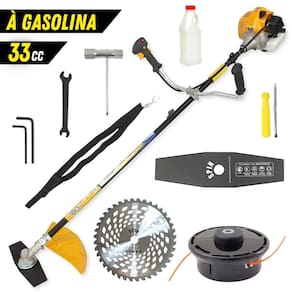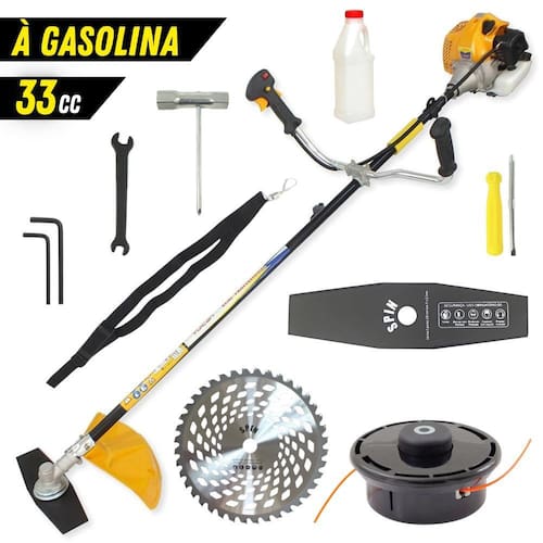 Itens e acessórios na(s) caixa(s):- 1 Lâmina 2 Pontas, 1 Carretel, 1 Dosador de Combustível, 1 Cinto de Sustentação, 1 Motor