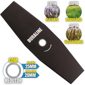 A LÂMINA (FACÃO) 2 Pontas acompanha um anel de redução que pode ser utiizada para roçadeiras de furo 20mm ou 25mm, sendo feita em aço cromo vanádio que garante mais , desempenho e durabilidade. É uma lâmina balanceada, fazendo com que haja menor vibração, corte contínuo e suave, com mais conforto ao operador e mais longevidade para a roçadeira. Possui maior rendimento no trabalho e não precisa ser afiada antes do . É uma lâmina Multi de 2 pontas que pode ser aplicada para diferentes trabalhos, possui material reforçado que é ideal para trabalhos pesados.