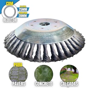 A Escova rotativa da Duraline acompanha um anel de redução, ou seja, pode ser utilizada para roçadeiras de furo 20mm ou 25mm, tendo as cerdas feitas em aço garante mais , desempenho e durabilidade. A Escova Rotativa Duraline é balanceada, fazendo com que haja menor vibração, corte contínuo e suave, com mais conforto ao operador e mais longevidade para a roçadeira. A escova é do modelo côncavo, assim facilitando o seu uso durante o manuseio. A Escova pode ser aplicada para diferentes trabalhos, dentre elas: Limpeza de Pavers, Limpeza de Calçadas, Limpeza de concreto, Limpeza de Pavimentos, Remoção de musgos e Remoção de ervas daninhas