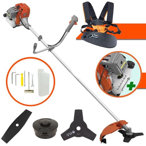 Com guidão ergonômico lateral, permite um alcance amplo e maior mobilidade, capaz de aumentar a produtividade diária. Possui motor 2 tempos á gasolina, de 51,6 Cilindradas (52cc) 13.000 de rotação 2,0 HP de potência que proporcionam maior performance e economia na operação.Seu conjunto de acessórios inclui kit de ferramentas, cinto de suporte duplo almofadado, carretel de nylon e lâmina de corte 3 pontas.