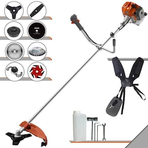 Com guidão ergonômico lateral, permite um alcance amplo e maior mobilidade, capaz de aumentar a produtividade diária. Possui motor 2 tempos á gasolina, de 51,6 Cilindradas (52cc) 9.000 de rotação 2,0 HP de potência que proporcionam maior performance e economia na operação. Seu conjunto de acessórios inclui kit de ferramentas, cinto de suporte duplo almofadado, carretel de nylon e lâmina de corte 3 pontas.