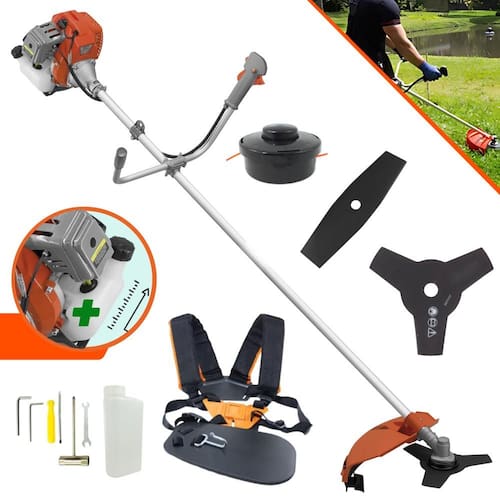 Com guidão ergonômico lateral, permite um alcance amplo e maior mobilidade, capaz de aumentar a produtividade diária. Possui motor 2 tempos á gasolina, de 51,6 Cilindradas (52cc) 13.000 de rotação 2,0 HP de potência que proporcionam maior performance e economia na operação.Seu conjunto de acessórios inclui kit de ferramentas, cinto de suporte duplo almofadado, carretel de nylon e lâmina de corte 3 pontas.