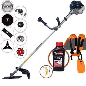 Roçadeira Lateral ANMAX CG430B À Gasolina 2 Tempos 43cc 1,7HP + Faca 3 Pontas 255m + Faca 6 Pontas 250mm + Faca 40 Dentes 255mm + Faca 80 Dentes 255mm + Escova Rotativa 24 cerdas + Trimmer + Óleo TOYAMA LUB FG50 500ml 2T