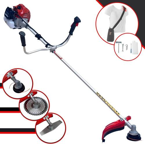 Com guidão ergonômico lateral, permite um alcance amplo e maior mobilidade, capaz de aumentar a produtividade diária. Possui motor 2 tempos á gasolina, de 43 Cilindradas; 1,7HP de potência que proporcionam maior performance e economia na operação. Seu conjunto de acessórios inclui kit de ferramentas, cinto de suporte almofadado, carretel de nylon e lâmina de corte 3 pontas.