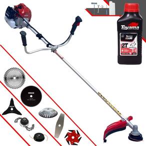 Roçadeira À Gasolina Kawashima BCJ 431L 42,7CC 1,7HP 2T + Faca 3 Pontas + Faca 6 Pontas + Faca 40 Dentes + Faca 80 Dentes + Trimmer + Escova 38 Cerdas + Óleo Toyama FG50 500ml