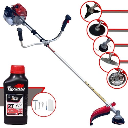 Roçadeira À Gasolina Kawashima BCJ 431L 42,7CC 1,7HP 2T + Faca 3 Pontas Duraline 255mm + Faca 40 Dentes Duraline 255mm + Faca 80 Dentes Duraline 255mm + Óleo Toyama FG50 500ml
