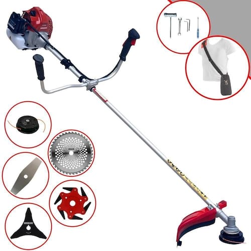 Com guidão ergonômico lateral, permite um alcance amplo e maior mobilidade, capaz de aumentar a produtividade diária. Possui motor 2 tempos á gasolina, de 43 Cilindradas; 1,7HP de potência que proporcionam maior performance e economia na operação. Seu conjunto de acessórios inclui kit de ferramentas, cinto de suporte almofadado, carretel de nylon e lâmina de corte 3 pontas.