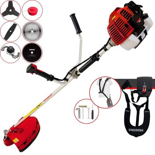 Roçadeira Robusta Kawashima KW43-L À Gasolina 2T 43cc 1,7HP 6 Opções de Corte Com Facas 2 Pontas, 3 Pontas, 40 Dentes, 80 Dentes, Trimmer e Carretel