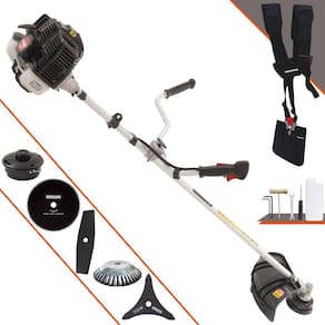 Roçadeira Kawashima KW43-LE À Gasolina 2T 43cc 1,7HP Com Lâmina 3 Pontas + Faca 2 Pontas 330mm 2,7mm + Faca 80 Dentes 255mm 1,5mm + Escova Rotativa 38 Cerdas 200mm