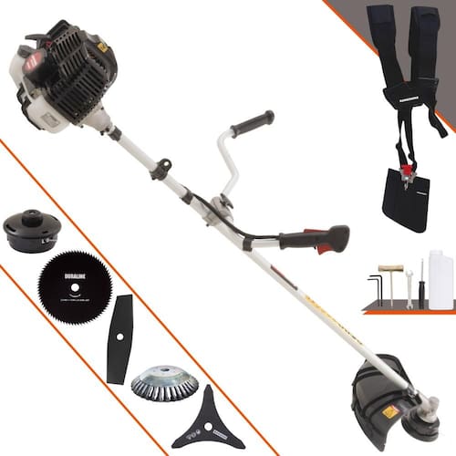 A Roçadeira Kawashima KW43LE conta com motor 2 tempos à gasolina, 43 cilindradas e potência de 1,7HP. Projetada para facilitar o trabalho de roçada de capim, arbustos, pastagens, controle de pastos, trabalhos de jardinagem, limpeza e manutenção de grandes áreas verdes com sua utilização em sítios; fazendas e chácaras. Ideal também para manutenção e limpeza de vias públicas e rodovias.