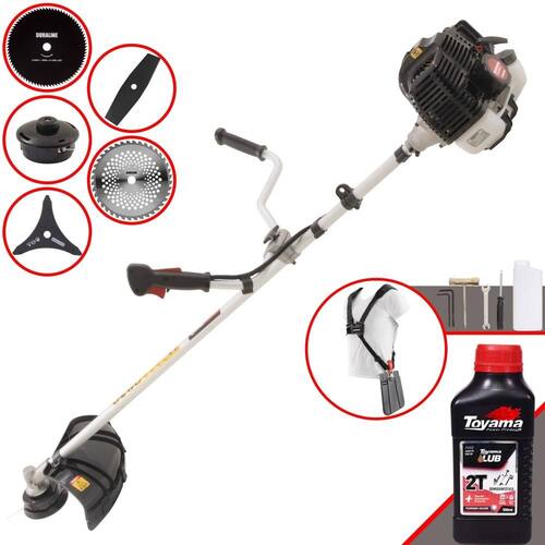 Roçadeira Kawashima KW43-LE À Gasolina 2T 43cc 1,7HP Com Lâmina 3 Pontas + Faca 2 Pontas 330mm 2,7mm + Faca 40 Dentes 255mm 2mm + Faca 80 Dentes 255mm 1,5mm + Óleo TOYAMA LUB FG50 500ml 2T