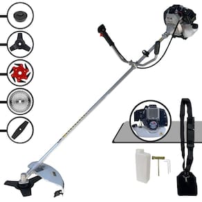 Com guidão ergonômico lateral, permite um alcance amplo e maior mobilidade, capaz de aumentar a produtividade diária. Possui motor 2 tempos á gasolina, de 42,7 Cilindradas, 12.000 de rotação 1,7HP de potência que proporcionam maior performance e economia na operação.Seu conjunto de acessórios inclui kit de ferramentas, cinto de suporte almofadado, carretel de nylon e lâmina de corte 3 pontas.