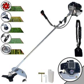 Com guidão ergonômico lateral, permite um alcance amplo e maior mobilidade, capaz de aumentar a produtividade diária. Possui motor 2 tempos á gasolina, de 42,7 Cilindradas, 12.000 de rotação 1,7HP de potência que proporcionam maior performance e economia na operação. Seu conjunto de acessórios inclui kit de ferramentas, cinto de suporte almofadado, carretel de nylon e lâmina de corte 3 pontas.