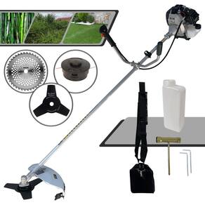 Com guidão ergonômico lateral, permite um alcance amplo e maior mobilidade, capaz de aumentar a produtividade diária. Possui motor 2 tempos á gasolina, de 42,7 Cilindradas, 12.000 de rotação 1,7HP de potência que proporcionam maior performance e economia na operação.Seu conjunto de acessórios inclui kit de ferramentas, cinto de suporte almofadado, carretel de nylon e lâmina de corte 3 pontas.