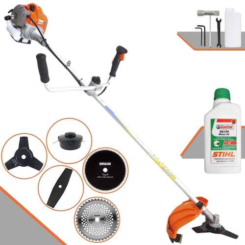Roçadeira Vulcan Lateral VR430P 2T 43cc 1,7HP À Gasolina Com Faca 3 Pontas + Faca 2 Pontas 330mm + Faca 40 Dentes 255mm + Faca 80 Dentes 255mm+ ÓLEO CASTROL STIHL